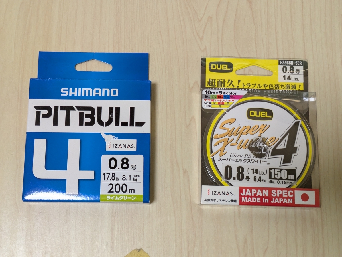 ちなみにスピニングには0.8号、ベイトには1.0号を巻いています